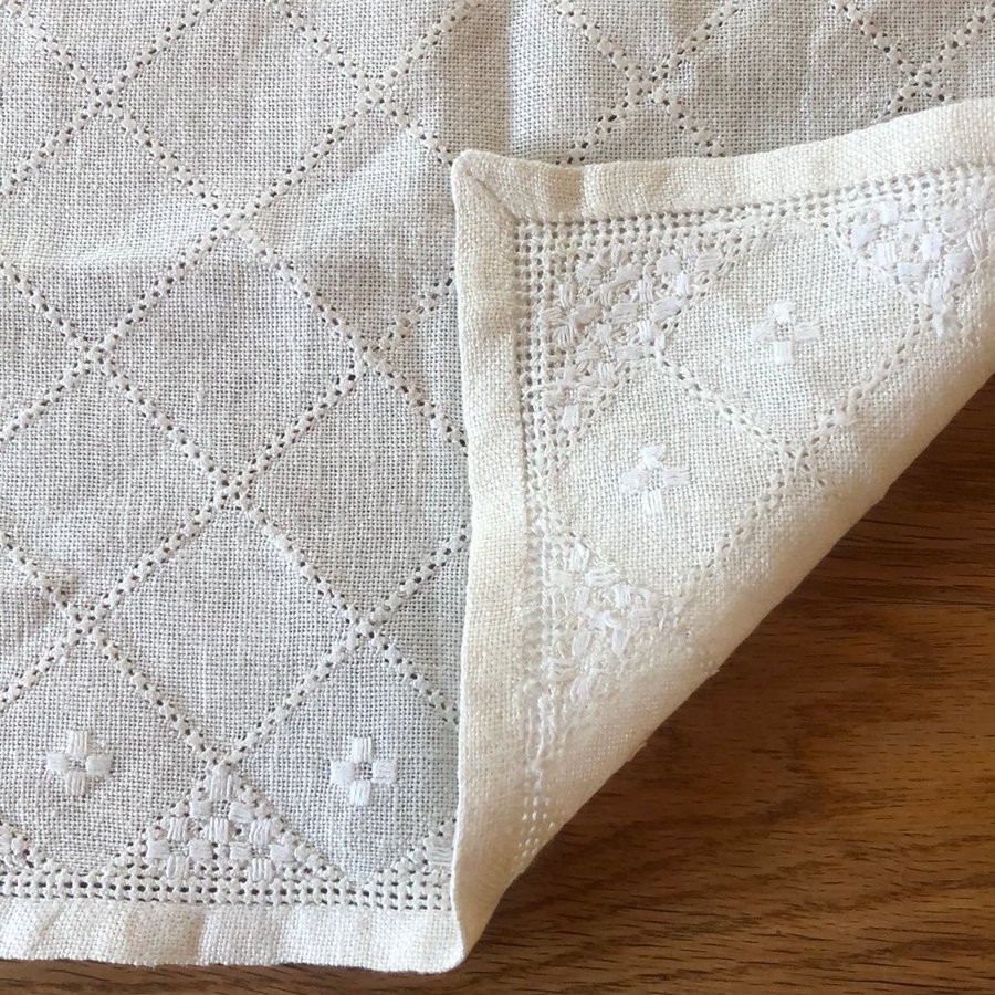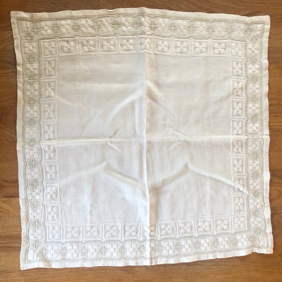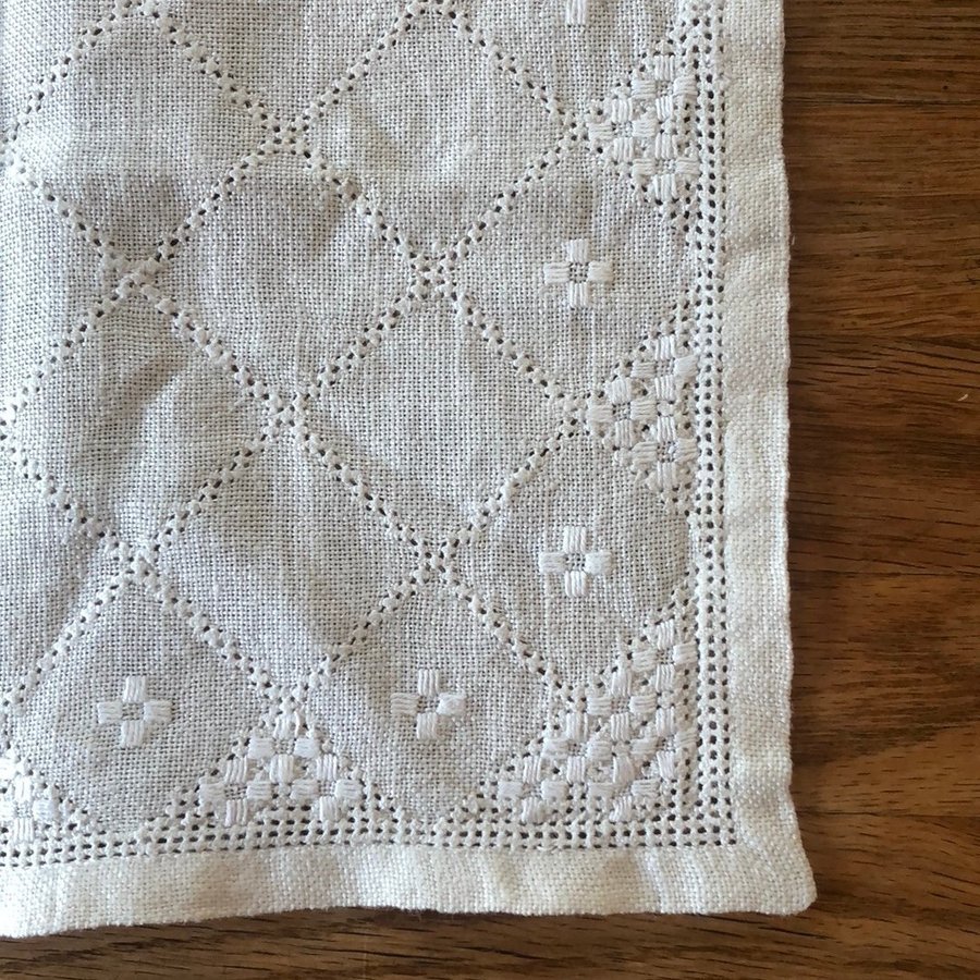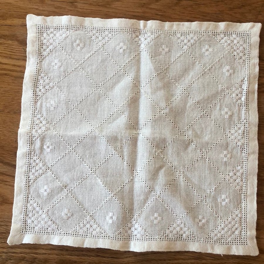 -Mindre duk, vit med vit broderi.