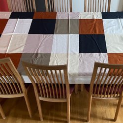 Rosa og hvid ternet stof. Stoffet måler ca. 85 cm x 140 cm. Stoffet har et par små huller, se billeder. Perfekt til et syprojekt