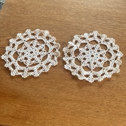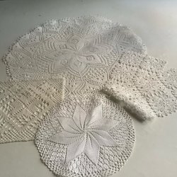Ett sortiment av virkade dukar i olika former och storlekar. Perfekt för att lägga till en vintage touch till ditt hem. 5 ovala 45x27 40x23 30x30 30x21 diam, 21cm, 75x15
