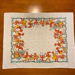 Vintage handbroderad linneduk med Spetskant i linne
