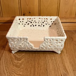 En fin, vad jag tycker det ser ut som, linneduk. Märkt med ”Kopia av Nord Museet 48.061”. I fint skick, jag kan inte hitta några fläckar eller dylikt. Den har dock legat på ett lager i många år så kan ha en viss källardoft, vilket är något jag kunnat tvätta bort från andra tygprodukter