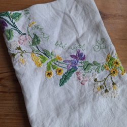En vacker vintage med broderade detaljer. Perfekt för att duka bordet med en touch av nostalgi. Lite speciell. Skickas efter betalning.