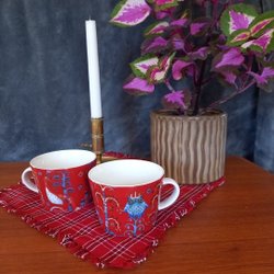 En vacker broderad duk i korsstygn med ett blommönster. Ca 62x62cm . Små prickar finns på mitten . Bomull. Perfekt för att lägga till en touch av vintage charm till ditt hem.