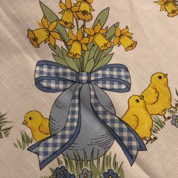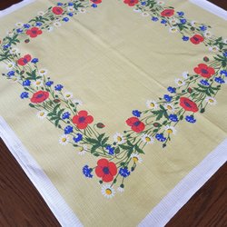 Retro duk med randigt mönster och dekorativa kanter.