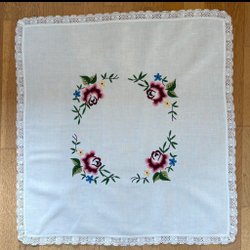 Oval broderad duk