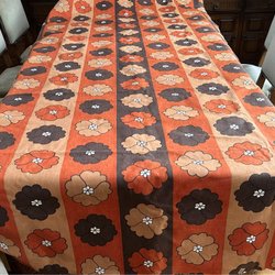 Duk, akryl (troligtvis) 70 tal med ränder i färgerna beige, gul, brun och svart.
