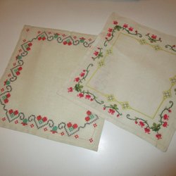 Paket ** Tre mindre handbroderade dukar med olika mönster och färger FINT SKICK