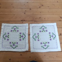 Två broderade dukar