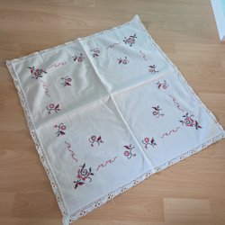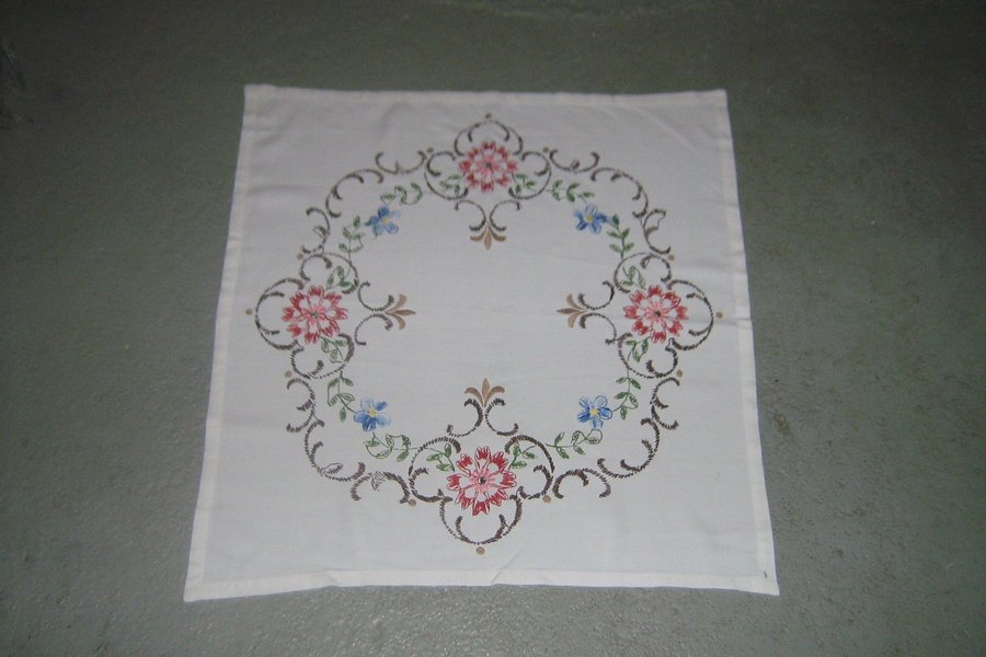 Duk med broderade blommor