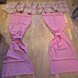 Duk med blommönster i ljusa färger. Tillverkad i Sverige. en fettfläck, se bild