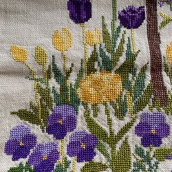 En vacker vintage duk i linne med ett intressant mönster. Perfekt för att duka bordet till speciella tillfällen eller för att ge en touch av vintage till din inredning.