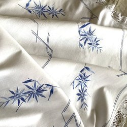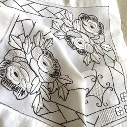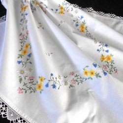Vacker handbroderad duk