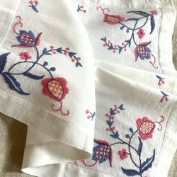 En vacker broderad duk med blommönster i blått och rosa. Storkek 61x24 cm De 2 sista bilderna är från avigsidan