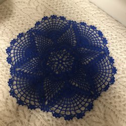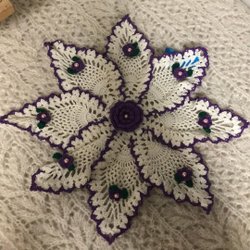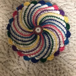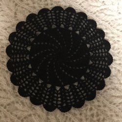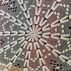 En vacker virkad duk i orange och ljus orange färg. Det ljusa är alltså inte vitt. Ca 20x20