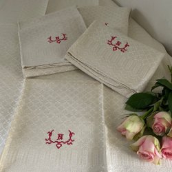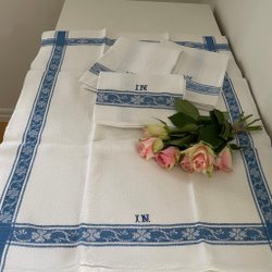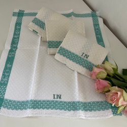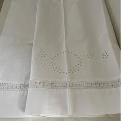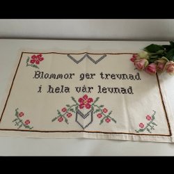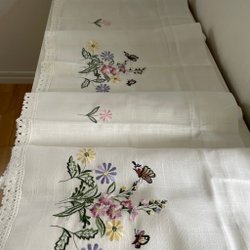Underbart vacker broderad duk m spets/bomull