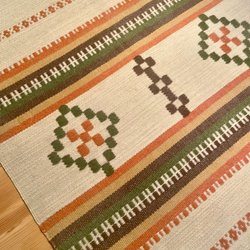 Handvävd löpare som är ofållad. Fålla den och du har en vacker bordslöpare.