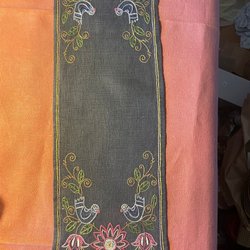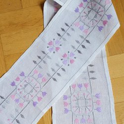 Löparen är 65 cm inkl fransar o 28 cm bred.