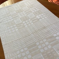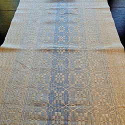 Handvävd löpare som är ofållad. Fålla den och du har en vacker bordslöpare.