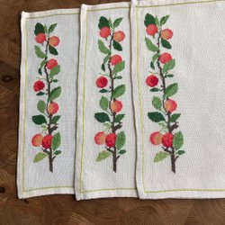 2 fina tabletter broderade i blått och grönt.