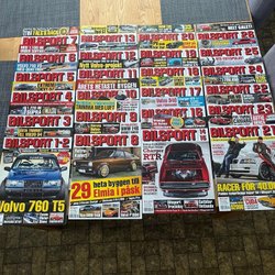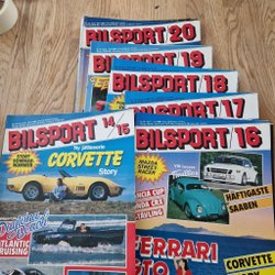 Ett parti Bilsport tidningar från 1987. Innehåller reportage om bland annat De Tomaso Pantera, Volvo 240, Lotus Esprit och BMW 5-serie.