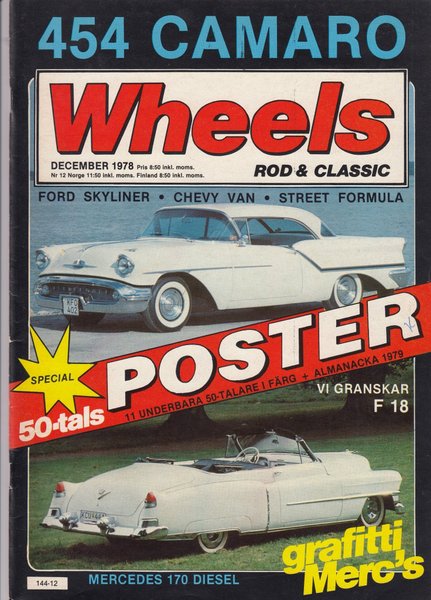 Wheels tidning från December 1978. Innehåller artiklar om 454 Camaro, Ford Skyliner, Chevy Van, Street Formula, Mercedes 170 Diesel och mer. Specialutgåva med 50-tals poster och almanacka för 1979.
