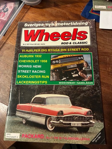 Tidning om motorer och klassiska bilar. Innehåller artiklar om Auburn 1932, Chevrolet 1958, Morris Hemi, Street Racing, Skokloster Run, Lackeringstips och Packard.