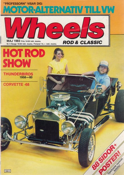 Wheels tidning från Maj 1983. Innehåller artiklar om Hot Rod Show, Thunderbirds 1958-60 och Corvette -68. Inkluderar en poster med 88 sidor.