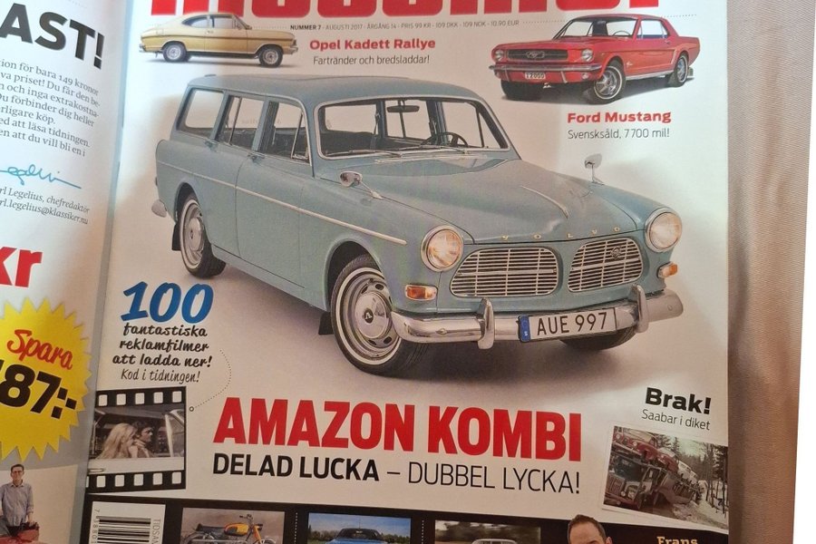 Tidning Klassiker, nummer 7, Augusti 2017. Reportage om Opel Kadett Rallye, Ford Mustang, Amazon Kombi och mycket mer.