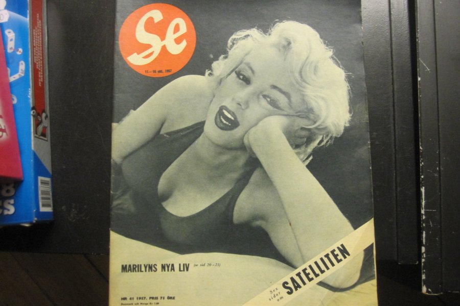 Tidningen Se från 1957 med Marilyn Monroe på omslaget. Innehåller reportage om Marilyns nya liv och sex sidor om satelliten.
