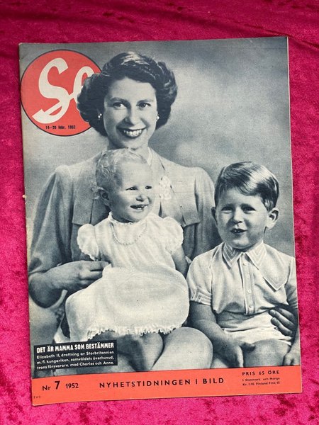 Tidningen Se från 14-20 februari 1952 med Elizabeth II, drottning av Storbritannien, tillsammans med Charles och Anne på omslaget. Reportage om kungligheter och aktuella händelser.
