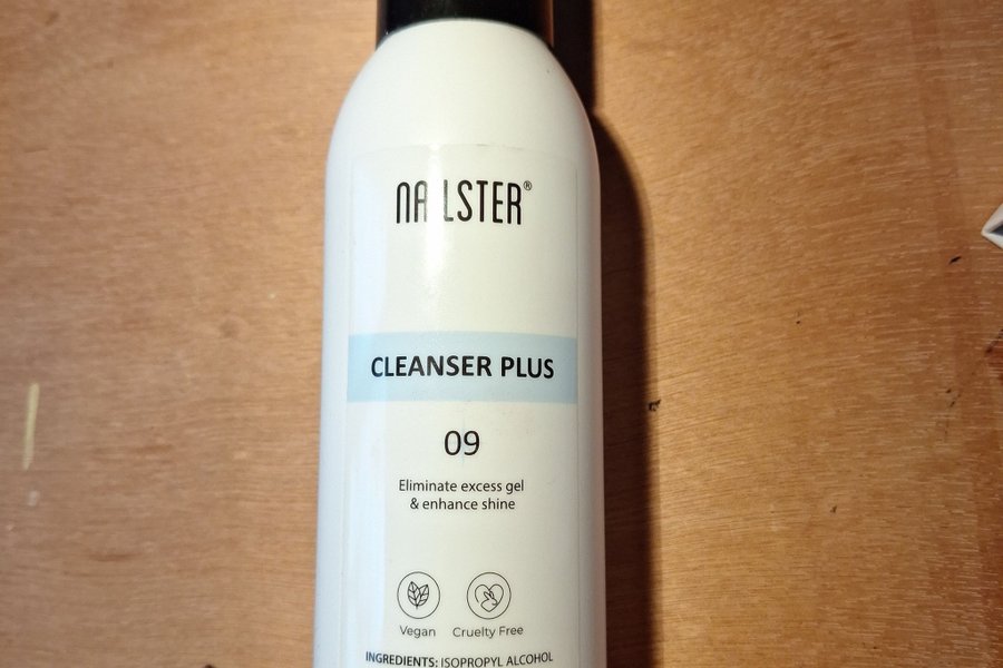 NALSTER Cleanser Plus är en rengöringsvätska för naglar. Den är vegansk och cruelty-free. Tillverkad i Europa. Volym: 570 ml