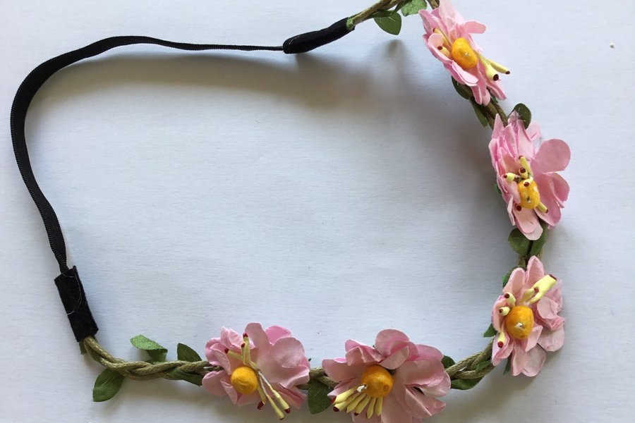 Boho hårband med Rosa blommor ca 3 cm i diameter