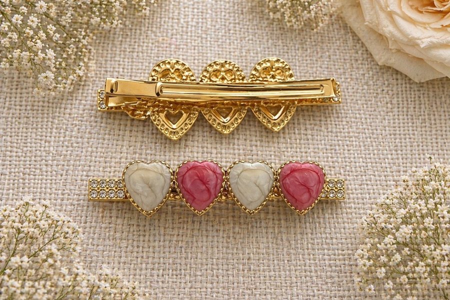 1 st Vackert hårspänne med hjärtan i rosa och vitt samt gnistrande detaljer. En liten detalj som känns extra fin.