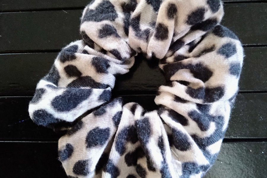 Håraccessoar med ett distinkt leopardmönster. Denna scrunchie är ett trendigt och praktiskt tillbehör för att sätta upp håret. Samfraktar gärna så titta även på mina andra annonser.