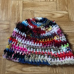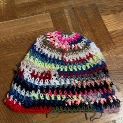 Gjort på återbruket garn av olika slag (obs kan finnas spår av djurhår då garnet är begagnat)