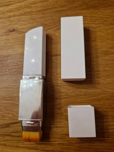 Färgkorrigerande foundation som anpassar sig efter din hudton. Stift med borste i ena änden, nytt.