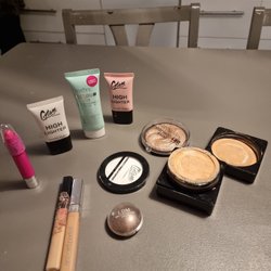 Ett sminksortiment med diverse produkter. Inkluderar L'Oreal Infallible More Than Concealer, L.A. Girl Pro Prep Face Primer, Technic Anti Blemish Balm, Technic Shade Adjust Drops, Technic Get Gorgeous Highlighting Powder, Technic Colour Fix Concealer, Kiss Professional ögonskugga, Technic Corrector Stix och Contour Stick.