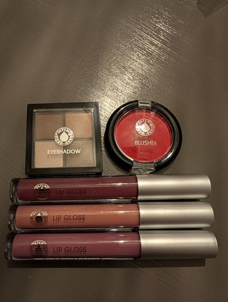 Ett sminkset från Depend innehållande en ögonskuggspalett, ett rouge och tre läppglans.