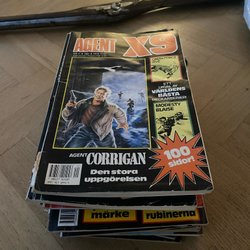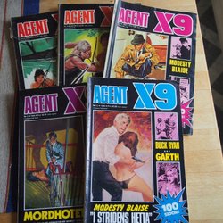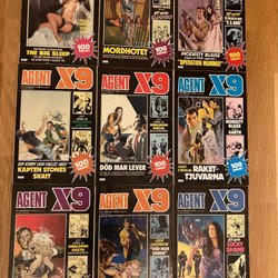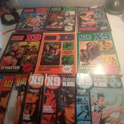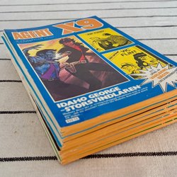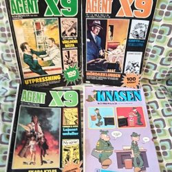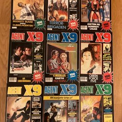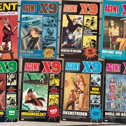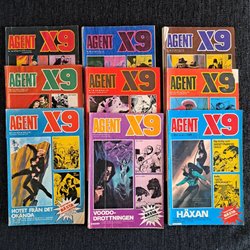 Dyk ner i en värld av hemliga uppdrag, farliga skurkar och oförglömliga äventyr med Agent X9 serietidningar. Sedan dess debut har Agent X9 varit i framkant av spännings- och äventyrsgenren, och skapat en stark följarskara av hängivna läsare genom åren. Med dess fängslande berättelser och levande illustrationer har Agent X9 blivit mer än bara en serietidning – den är en institution inom agentgenren. Varje upplaga erbjuder läsaren en biljett till en värld av internationellt spionage, där varje sida överskrider den nästa i spänning. Agent X9 har gett oss många minnesvärda stunder genom klassiska titlar som "De förrädiska diamanterna" och "Jakten på den försvunna skatten". Dessa tidningar, rika på action och intriger, har gjort Agent X9 till en av de mest älskade serietidningarna genom tiderna. Med en perfekt blandning av spänning, drama och äventyr har Agent X9 alltid lyckats hålla sina läsare på tåspetsarna, ivriga att veta vad som kommer härnäst.