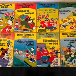Agent X9, 1976. Nr 1-5, 7, 10 och 13, totalt åtta tidningar, varav flera på 100 sidor. Ett par av dem har någon tejpbit på omslaget. Signaturen "MW" i blå eller svart tusch i nedre vänstra hörnet på omslagets insida, ca 1-2 cm hög. Generellt annars i bra skick. Förmånligt porto.