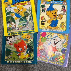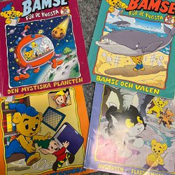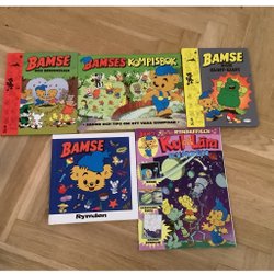 Ett paket med Bamse-relaterade produkter. Inkluderar tre Bamse-böcker: "Jul på Kullarna", "Strumma och Klurerna" och "Bamse Serier"(tidning) + Bamse hitta på vägen-spelet. Två små böcker