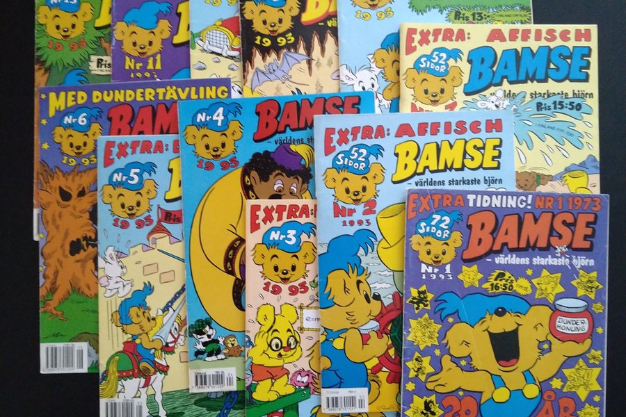 12 stycken Bamsetidningar från år 1993.