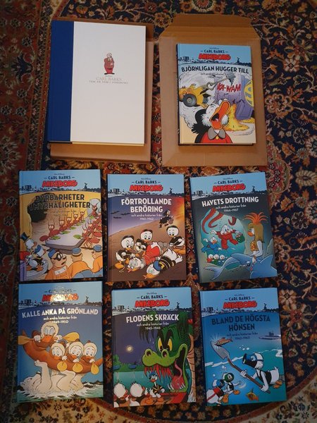 Carl Barks Ankeborg böcker. Inkluderar "Vem är vem i Ankeborg", "Björnligan Hugger Till", "Dyrbarheter I Myrhåligheter", "Förtrollande Beröring", "Havets Drottning", "Kalle Anka På Grönland", "Flodens Skräck", och "Bland De Högsta Hönsen".