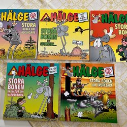 Samling av Hälge presentböcker av Lars Mortimer. Innehåller nummer 12, 18, 21 och Tar Time Out och nummer 15. Perfekt för Hälge-fans och samlare.