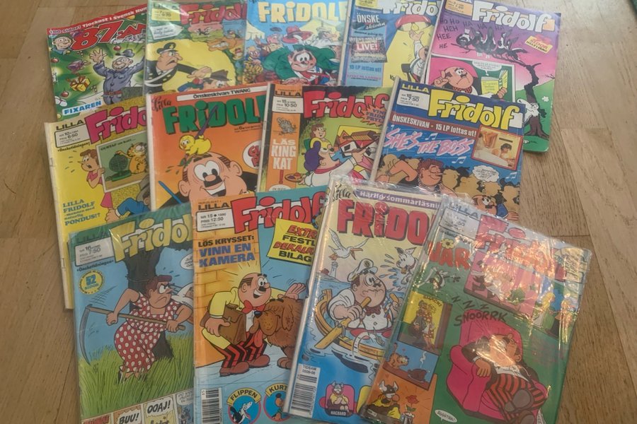 Parti med en 14 stycken Fridolf serietidningar. Innehåller nummer från olika år.
