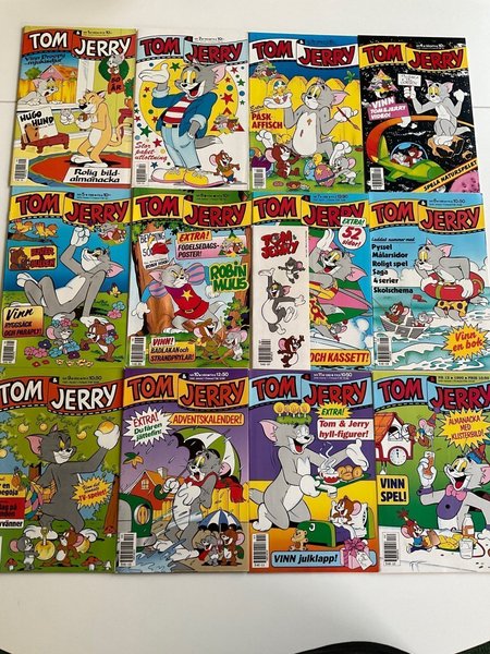 Tom & Jerry serietidningar från 1990. Innehåller äventyr med Tom och Jerry, roliga serier, pyssel, tävlingar och mycket mer. Perfekt för samlare eller nostalgiska läsare.