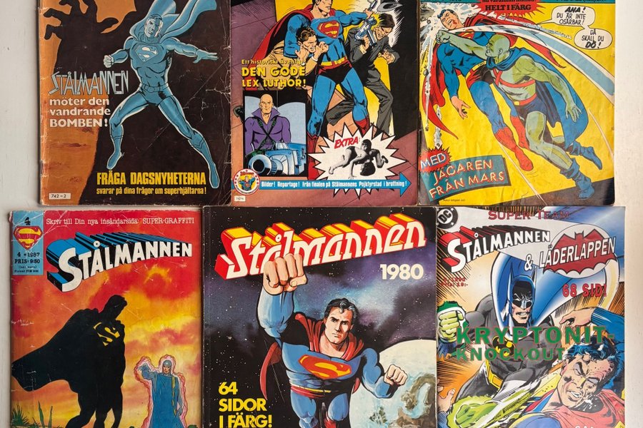 Stålmannen tre nr, samt ett seriealbum, ett nr av Stålmannen & Läderlappen och ett nr av Gigant (från 1973)