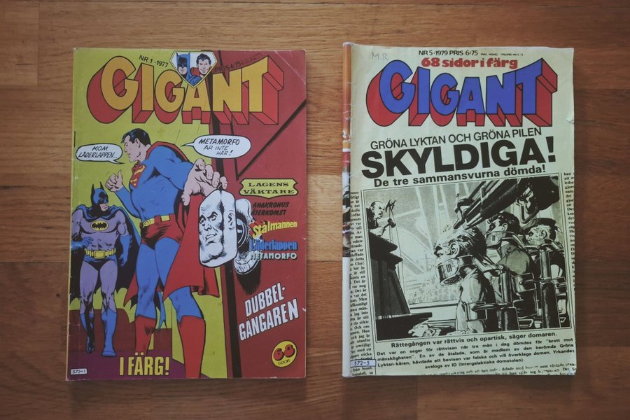 Serietidningen Gigant nr 1 från 1977 och nr 5 från 1979, denna har en liten signatur från tidigare ägare på framsidan.