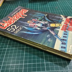 Tidningarna är i ok skick förutom en som har några trasiga sidor samt lite fläckar tyvärr.