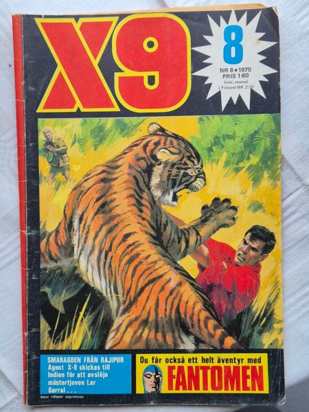 Tidning med Agent X-9 som skickas till Indien för att avslöja mästertjuven Lar Garral. Innehåller även ett äventyr med Fantomen. SAMFRAKT vid köp av flera! Läggs i plastficka plus välemballerad.